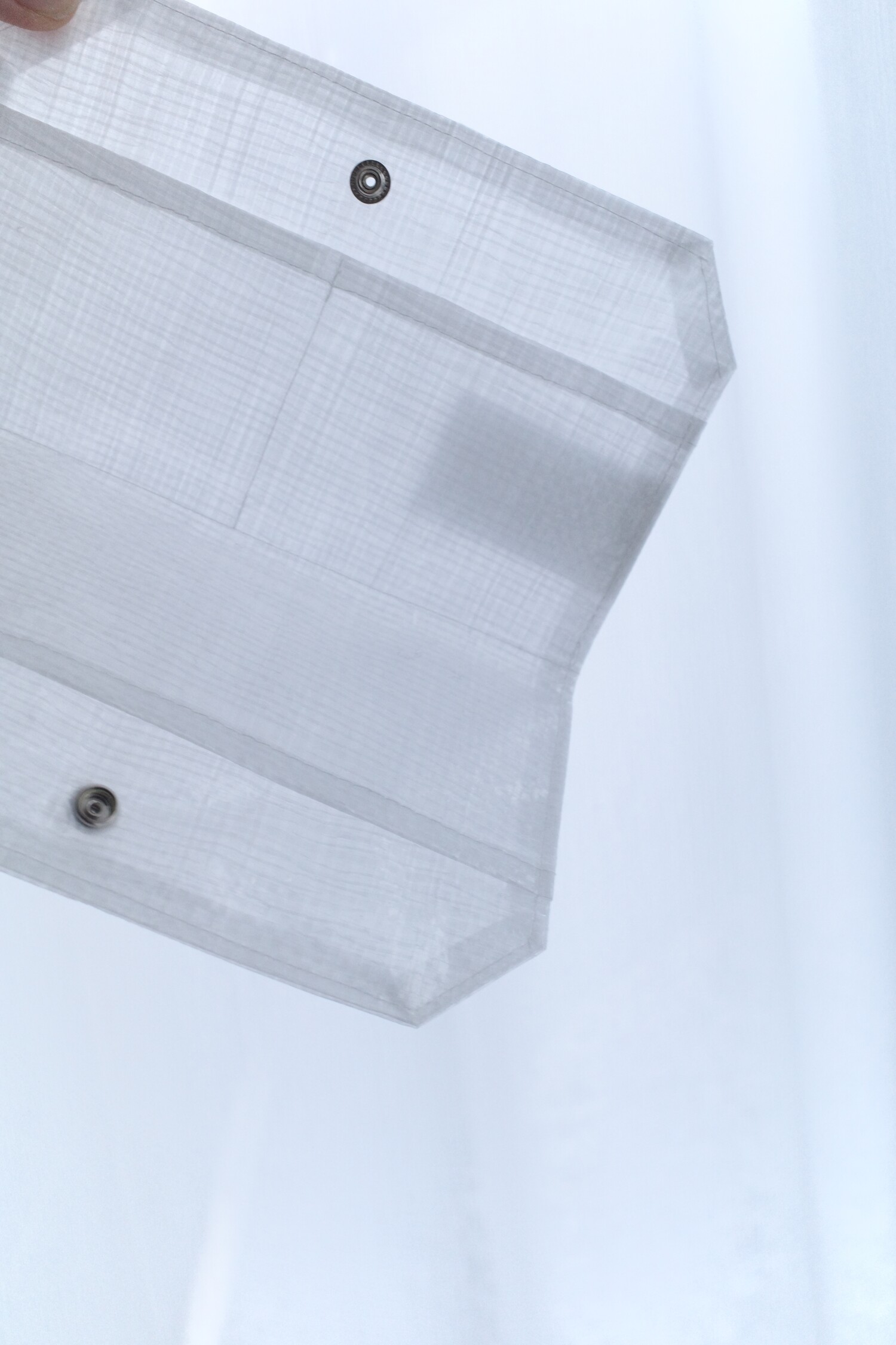 우수한 내구성과 높은 방수성이 특징인 타포린 원단을 활용한 파우치입니다.한 편에는 안경을, 반대편에는 안경닦이, 렌즈 등 작은 소지품을 보관할 수 있도록 제작되었습니다.